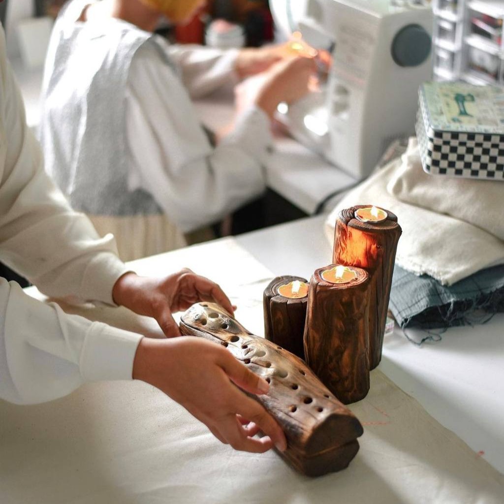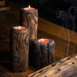 خانه محصولات دست ساز چوبی لوازم دکوری چوبی جاشمعی ۳ تکه