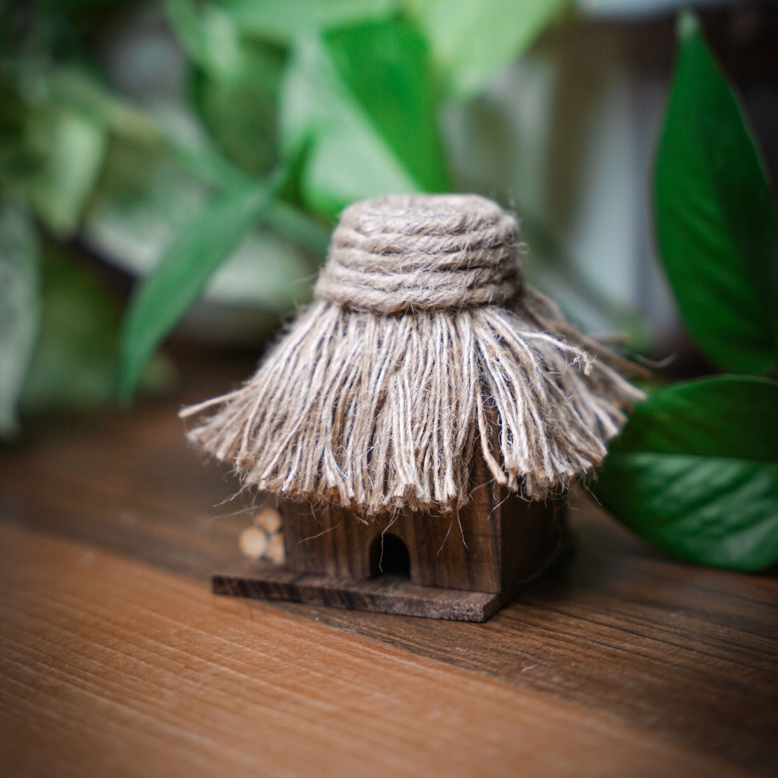 جاعودی چوبی طرح خانه روستایی نوعی نگهدارنده عود است که از چوب طبیعی ساخته شده و به شکل خانه‌ای کوچک با طراحی الهام‌گرفته از معماری روستایی ایران طراحی شده است.